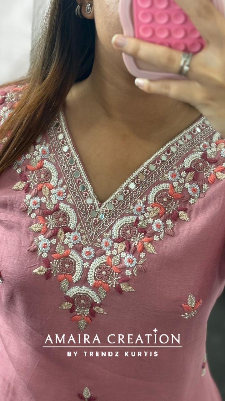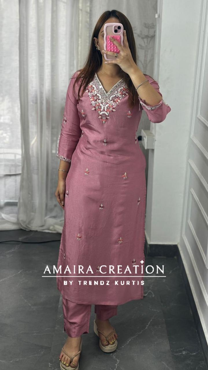Premium Dola Silk Pink Colour Pant Set With Banarasi Dupatta
