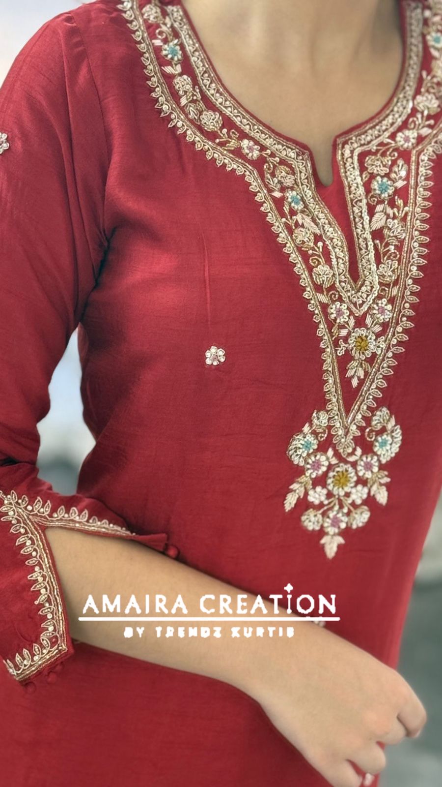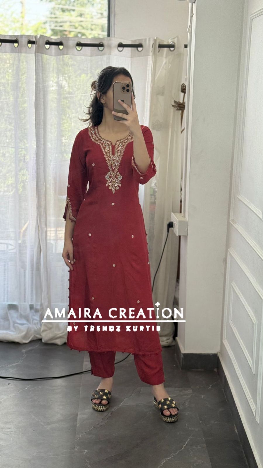 Premium Dola Silk Rust Pant Set With Banarasi Dupatta