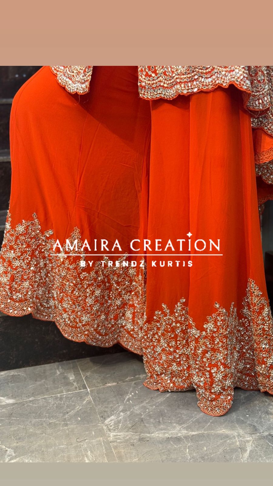 Kurti length front 29 Inches (Approx) Kurti length front 42 Inches (Approx) Divider Plazo length 43 Inches (Approx) Dry Clean Only *Disclaimer: Please note that minor color variations may arise due to varying screen resolutions.*