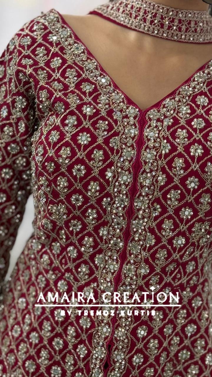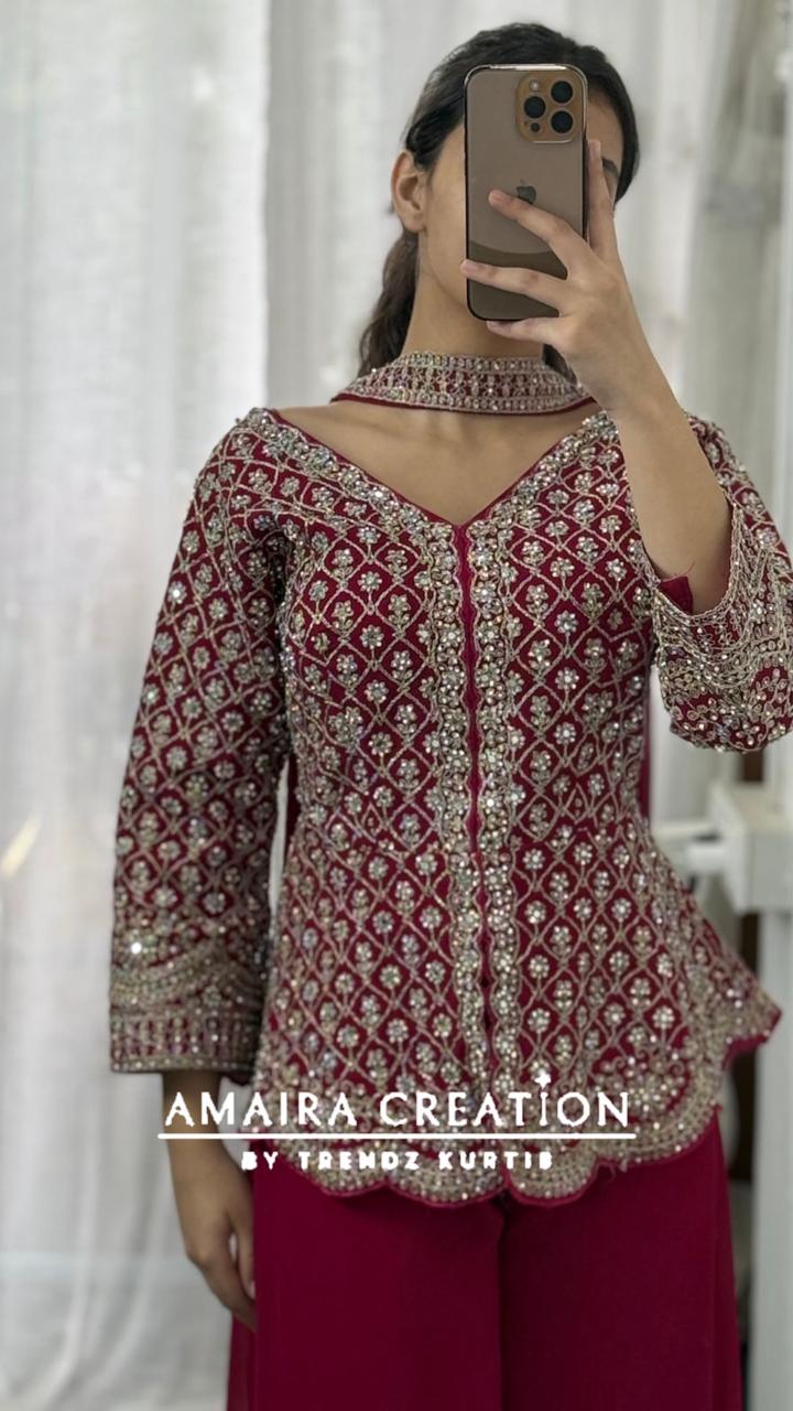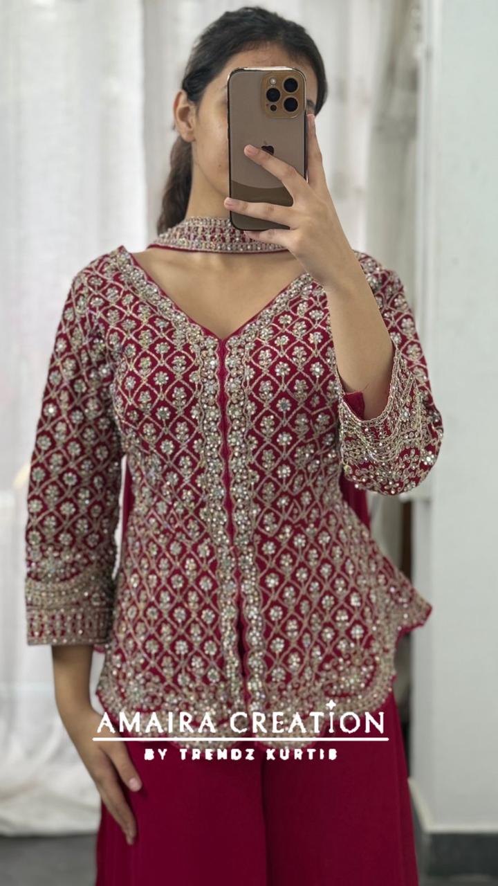 Premium Georgette Magenta Full Heavy Work Divider Set