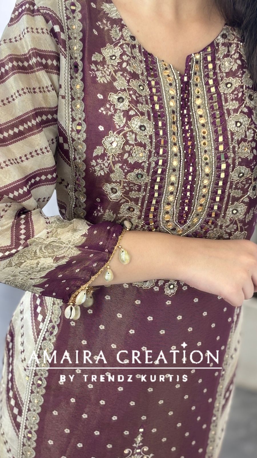 Premium Glass Tissue Bandhni Print Wine Colour Pant Set
