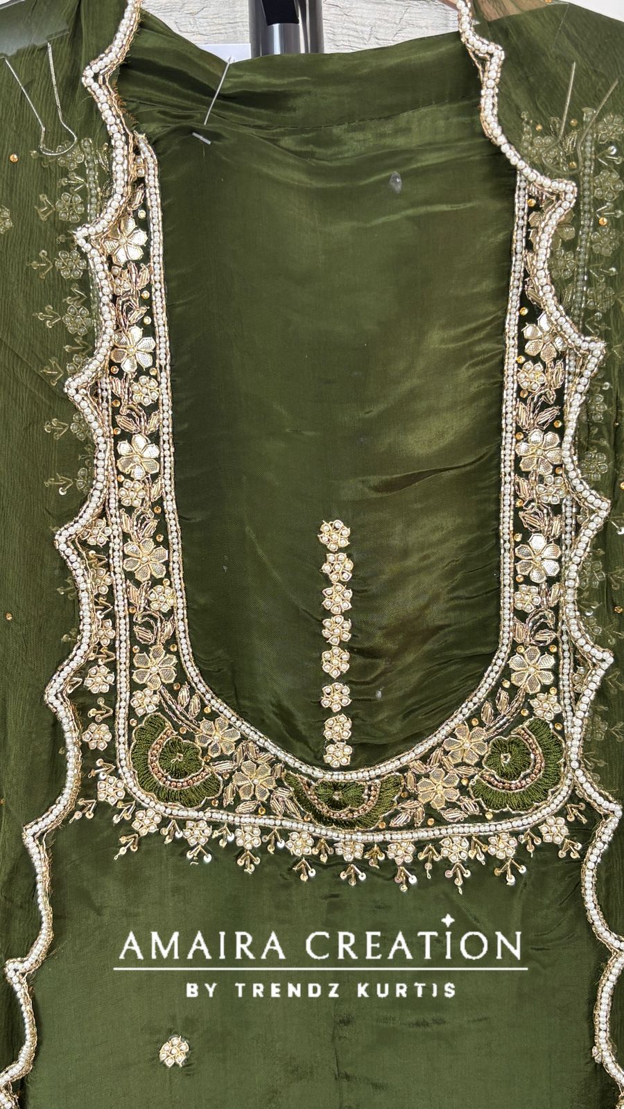 Shirt Measurements: 2.50 Meters (Approx) Bottom Measurements: 2.40 Meters (Approx) Dupatta Measurements: 2.10 Meters (Approx) Dry Clean Only *Disclaimer: Please note that minor color variations may arise due to varying screen resolutions.*