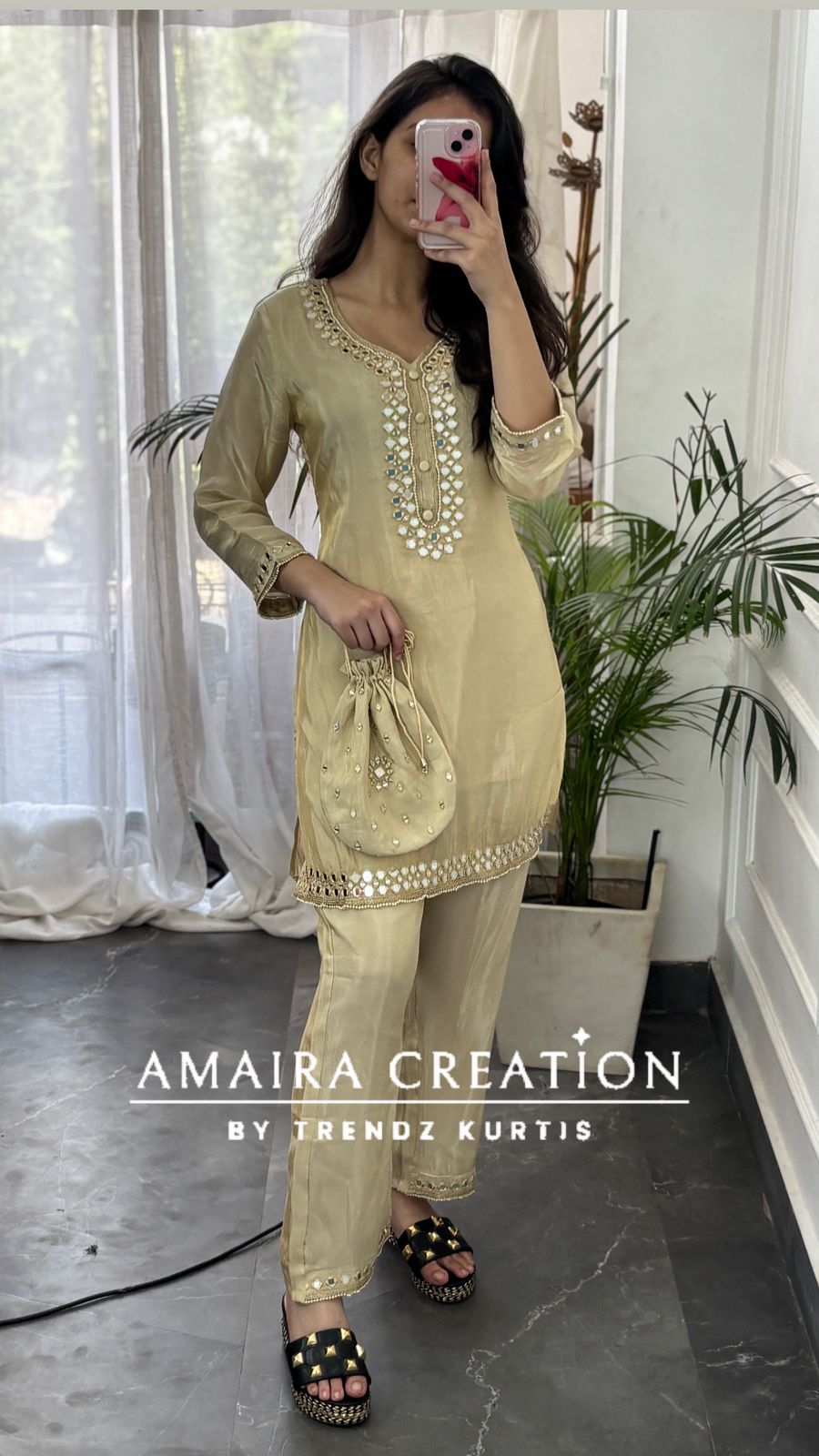 Kurti length 34 Inches (Approx) Pant length 39 Inches (Approx) Dry Clean Only *Disclaimer: Please note that minor color variations may arise due to varying screen resolutions.*