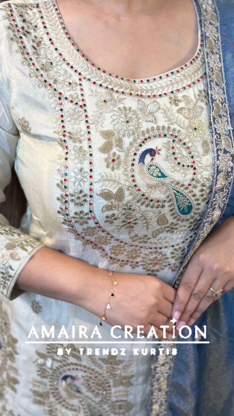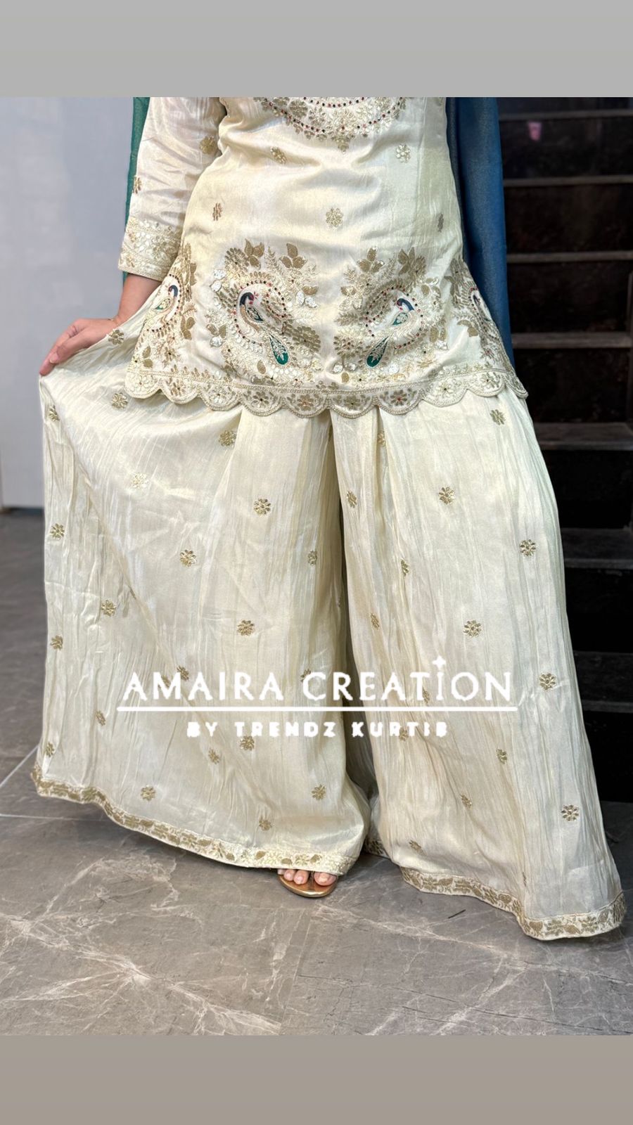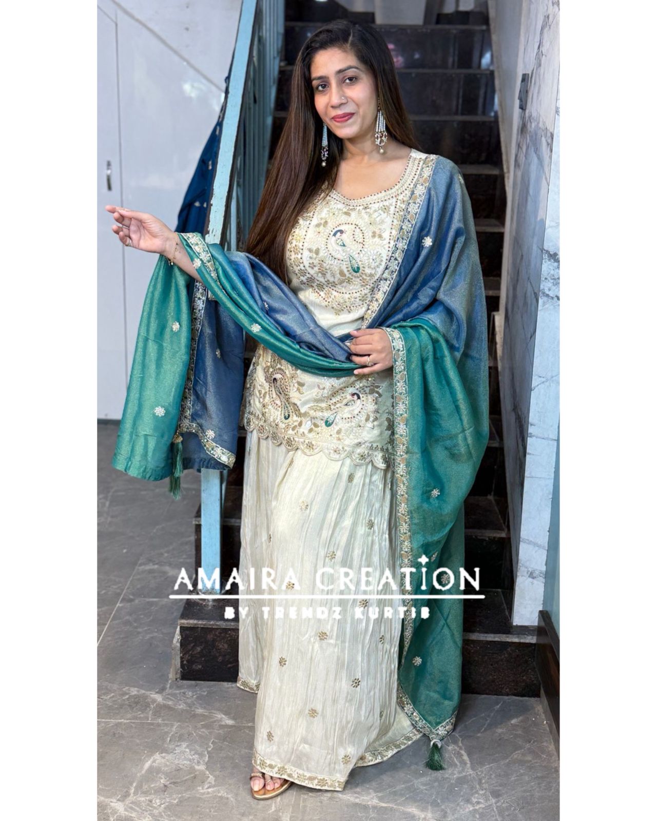Kurti length 31 Inches (Approx) Ghera Plazo length 43 Inches (Approx) Dry Clean Only *Disclaimer: Please note that minor color variations may arise due to varying screen resolutions.*