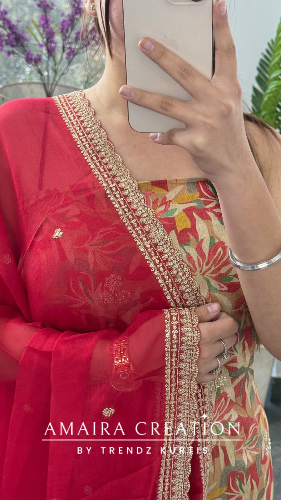 Premium Falsa Glass Tissue Fabric Unstitched Suit With Chiffon Dupatta