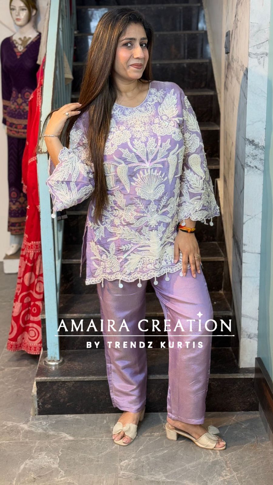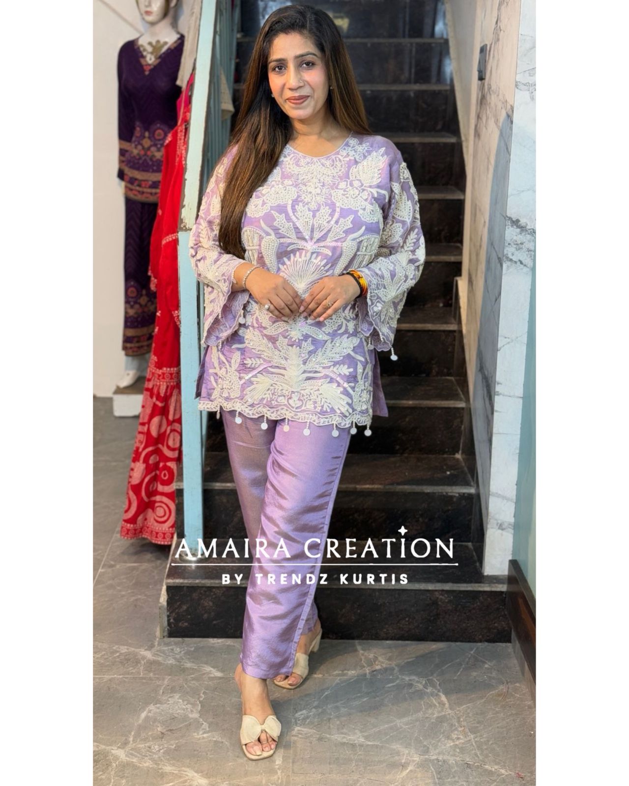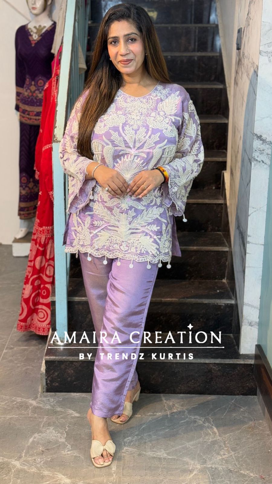 Premium glass tissue lavender cord set with pearl and thread detailing