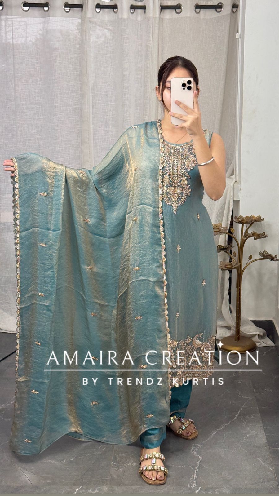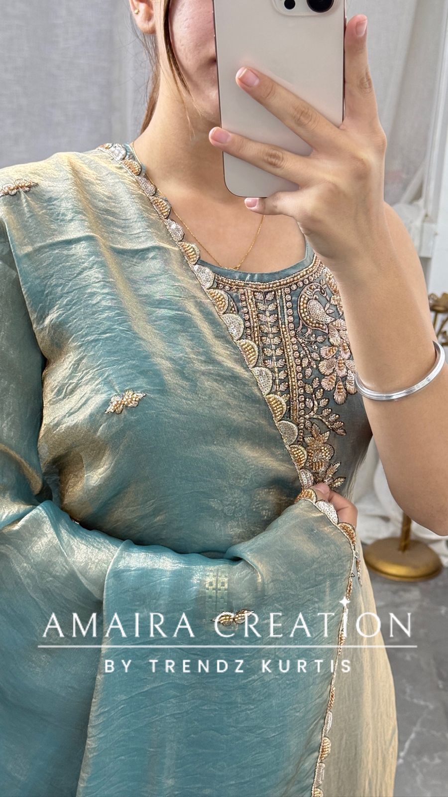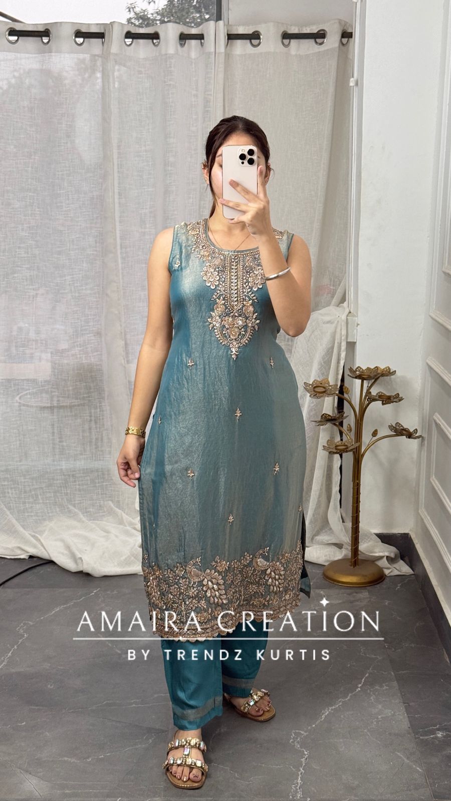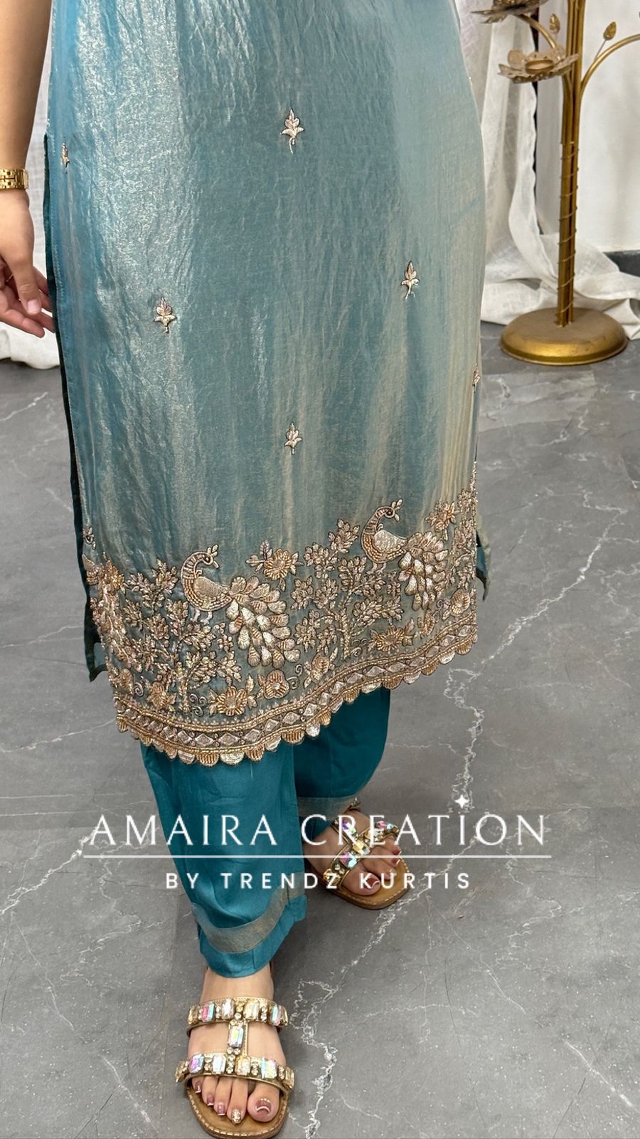 Kurti length 43 Inches (Approx) Pant length 37 nches (Approx) Dry Clean Only *Disclaimer: Please note that minor color variations may arise due to varying screen resolutions.*
