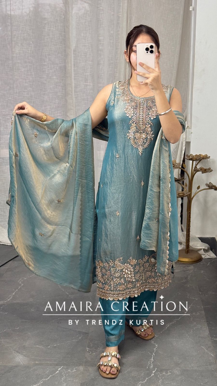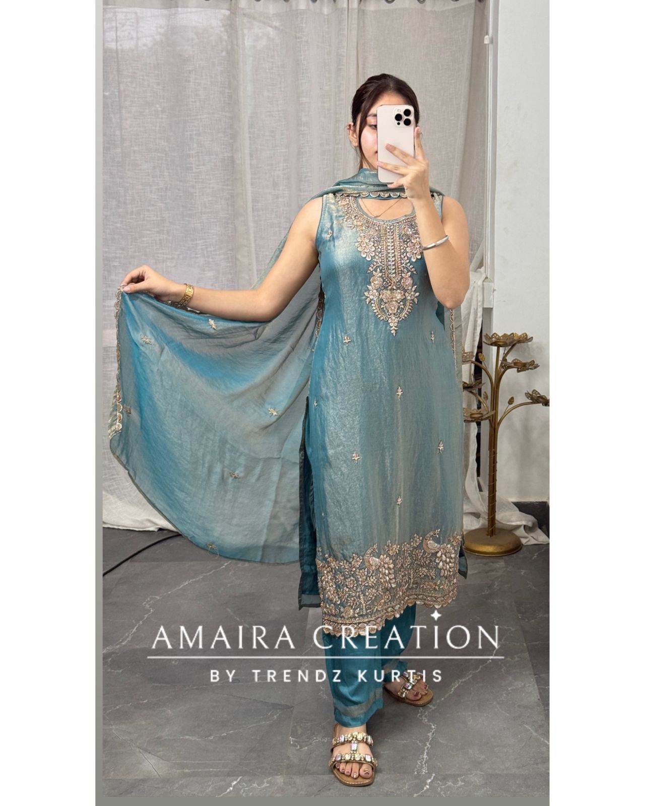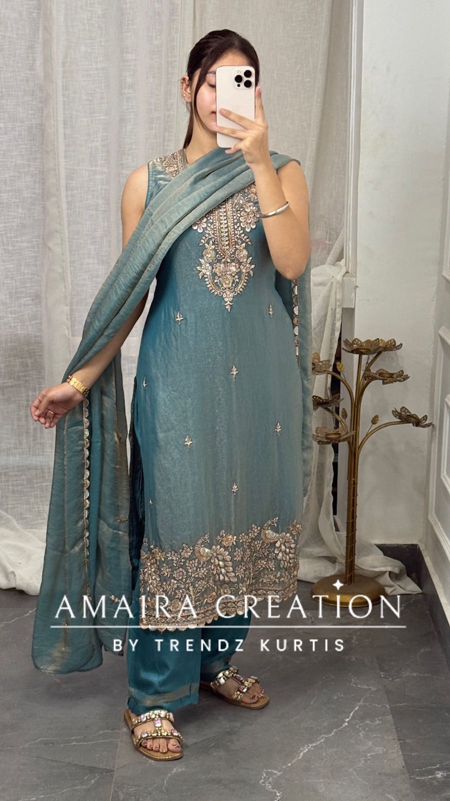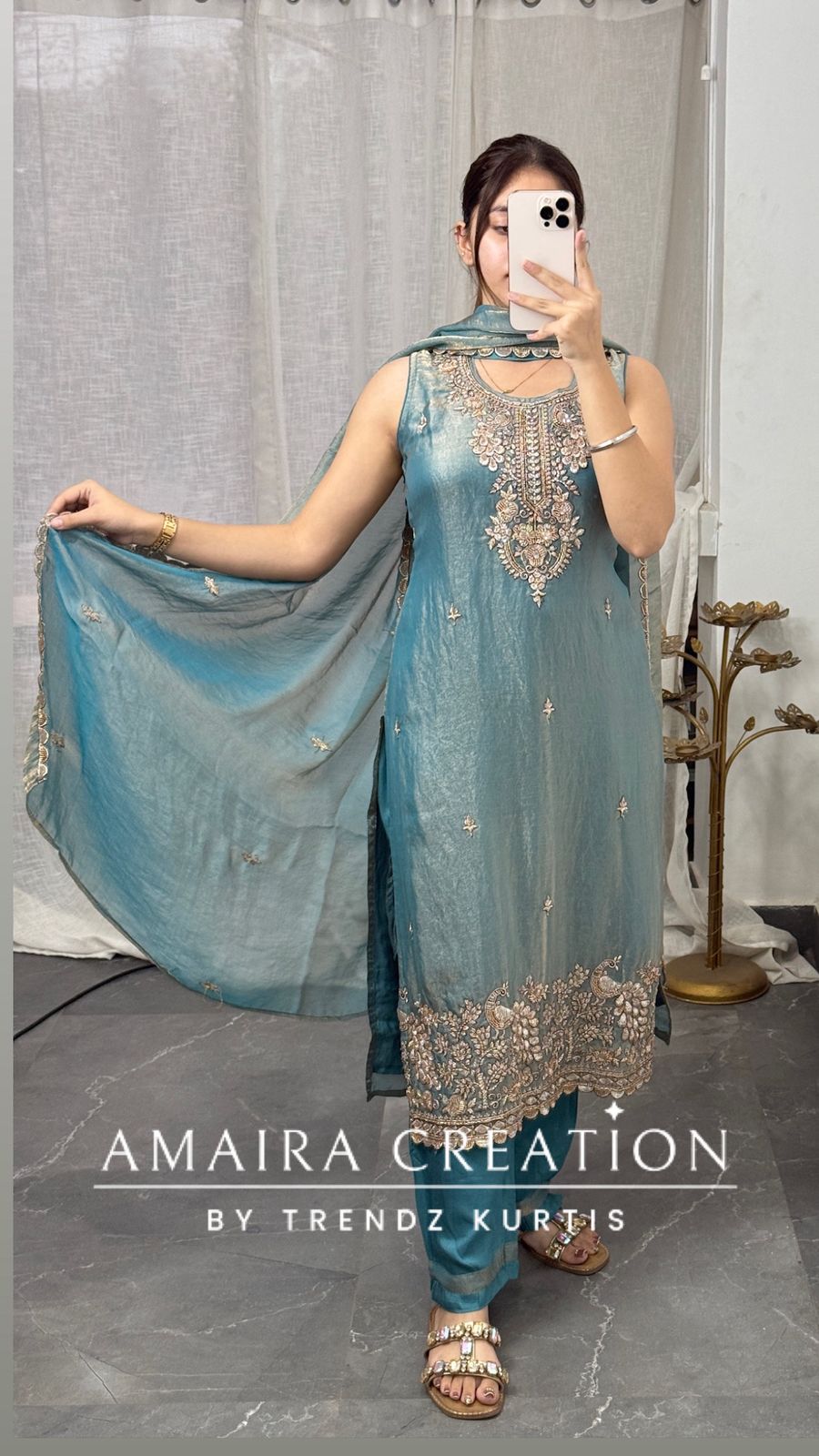 Kurti length 43 Inches (Approx) Pant length 37 nches (Approx) Dry Clean Only *Disclaimer: Please note that minor color variations may arise due to varying screen resolutions.*
