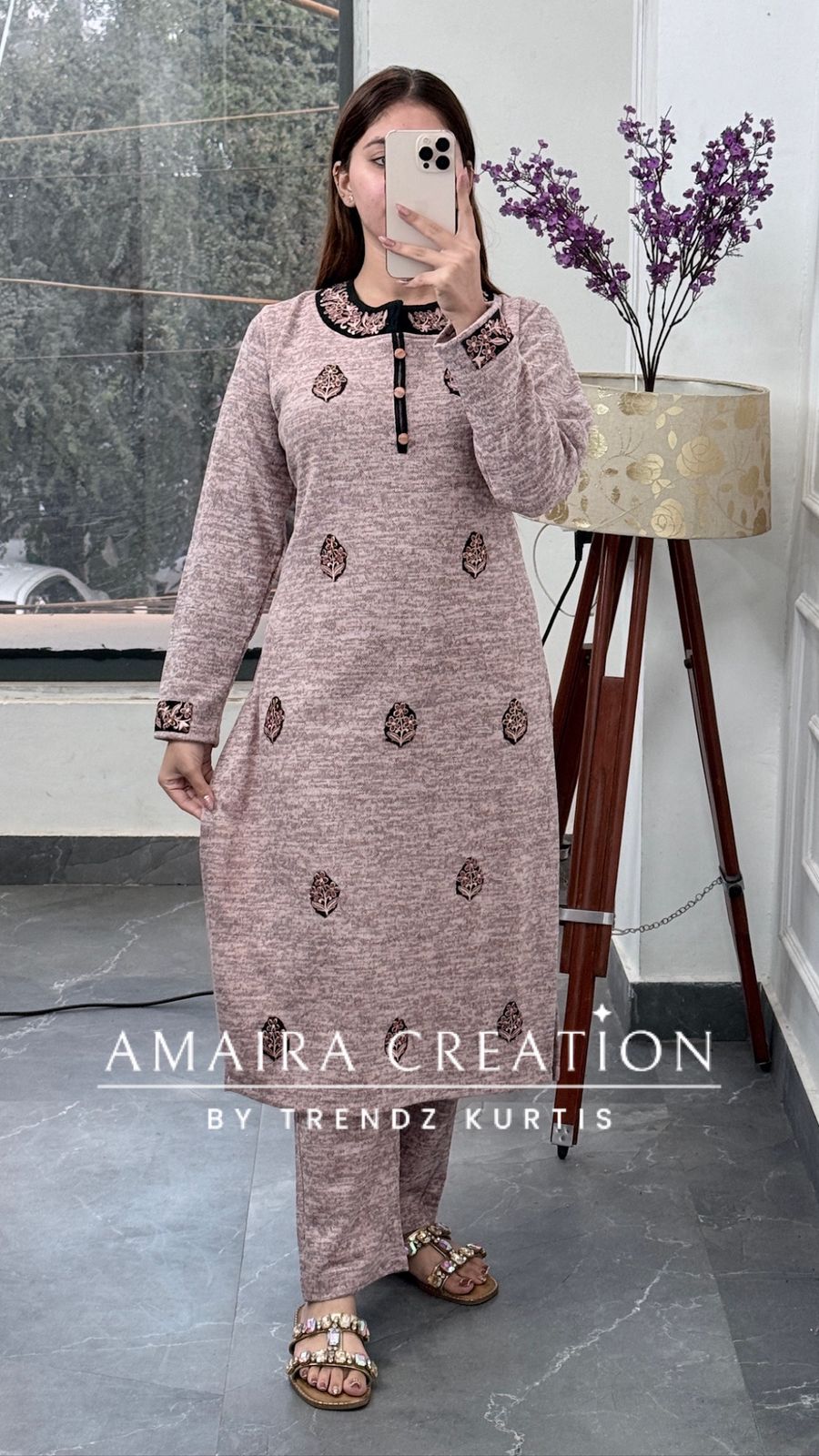 Premium Kasturi Wool Pink Colour Patch Work Pant Set