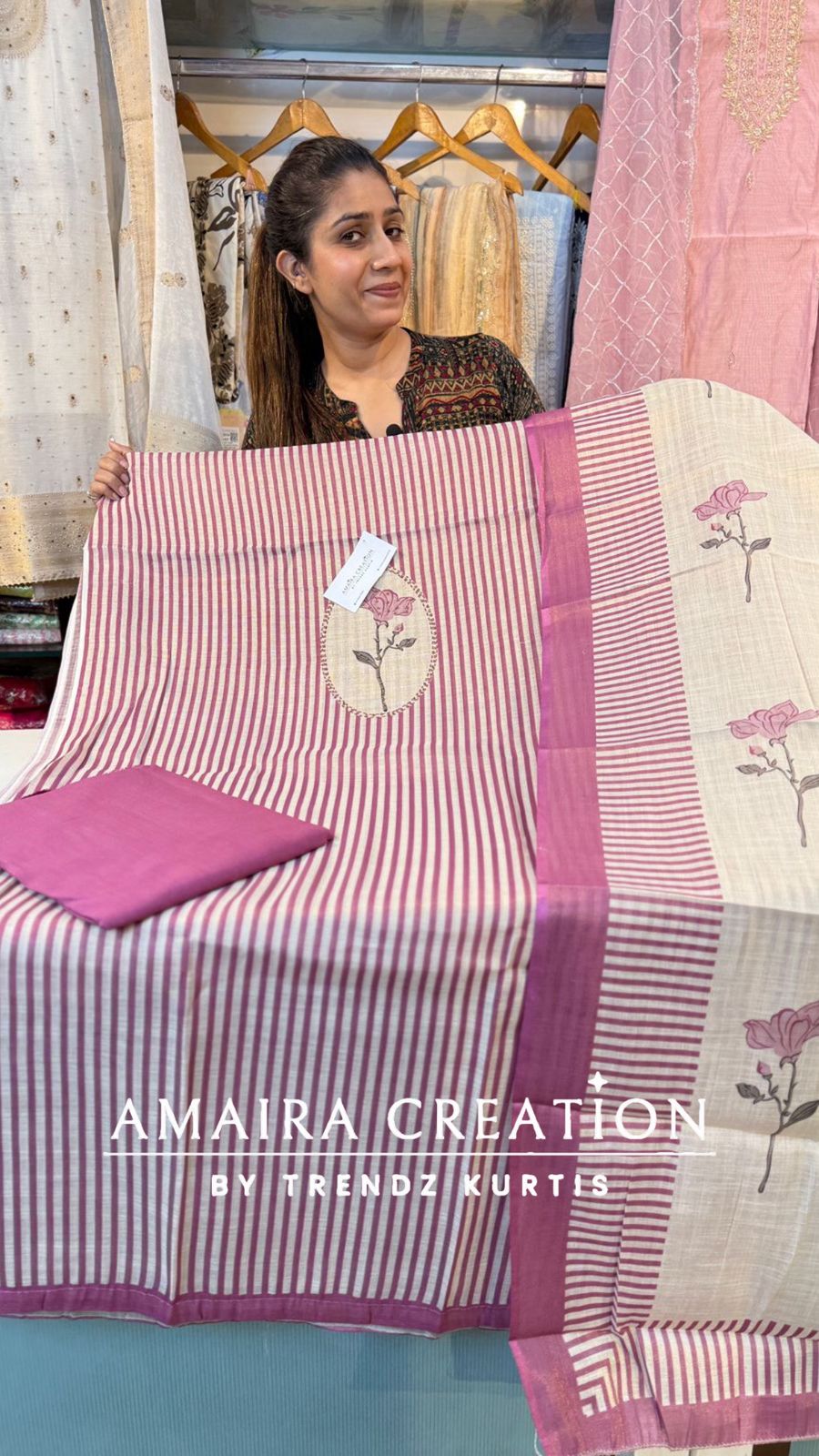 Premium Kota Doria fabric unstitched suit with thread embroidered detailing
