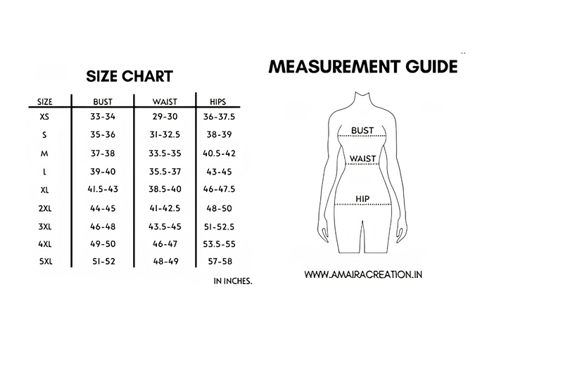 | Size | Bust (in) | Waist (in) | Hips (in) |
