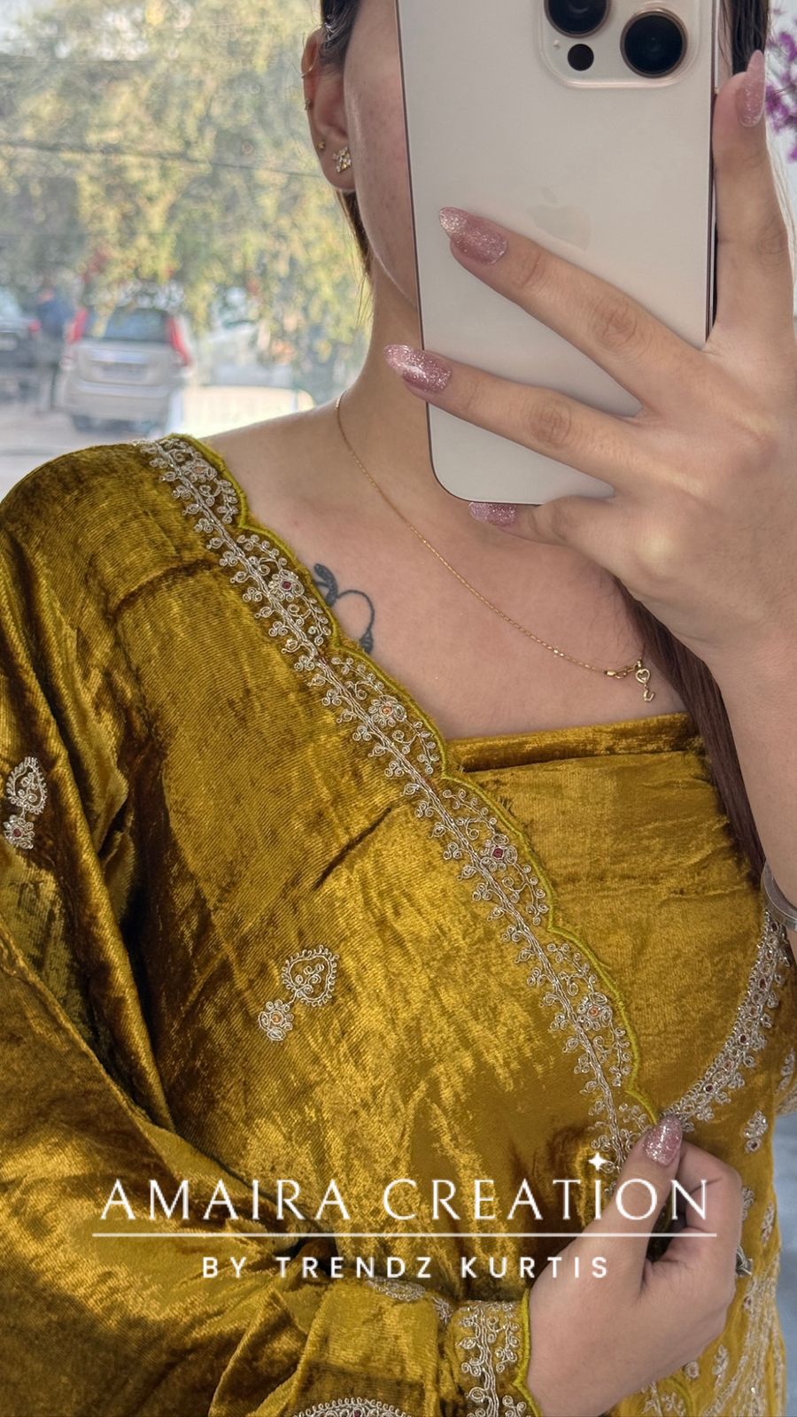 Premium Micro Velvet Mustard Unstitched Suit With Brocade Bottom