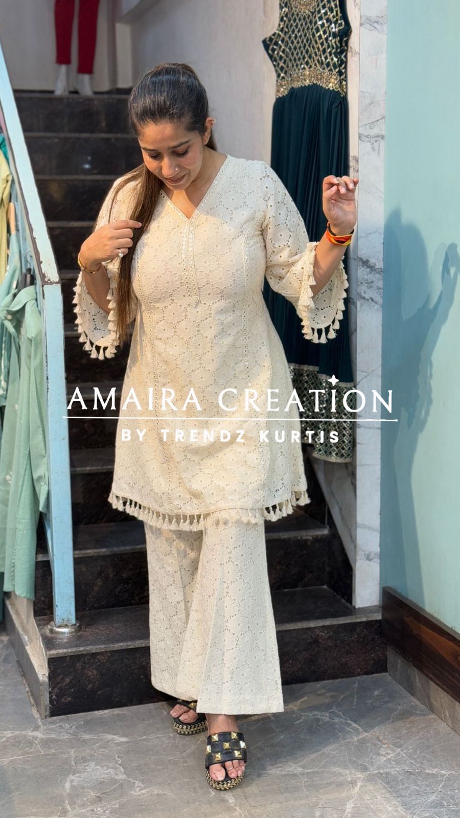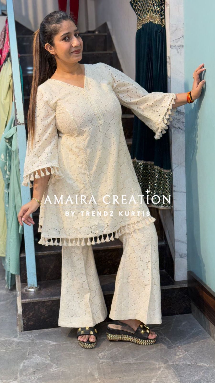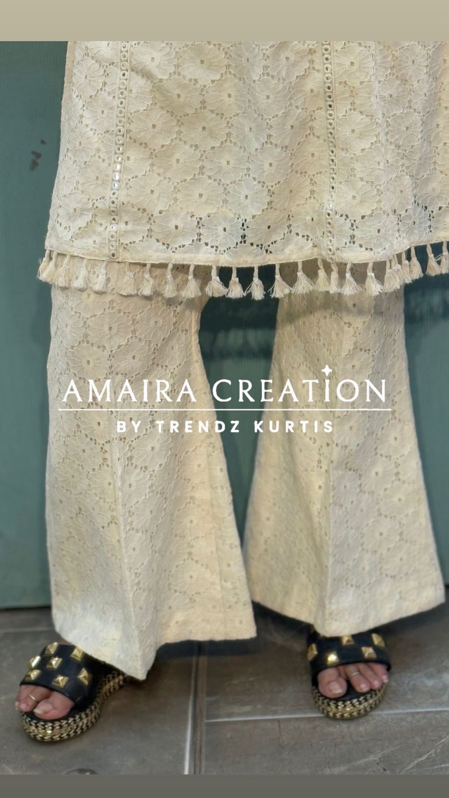Kurti length 34 Inches (Approx) Bell Bottom length 37 Inches (Approx) Dry Clean Only *Disclaimer: Please note that minor color variations may arise due to varying screen resolutions.*