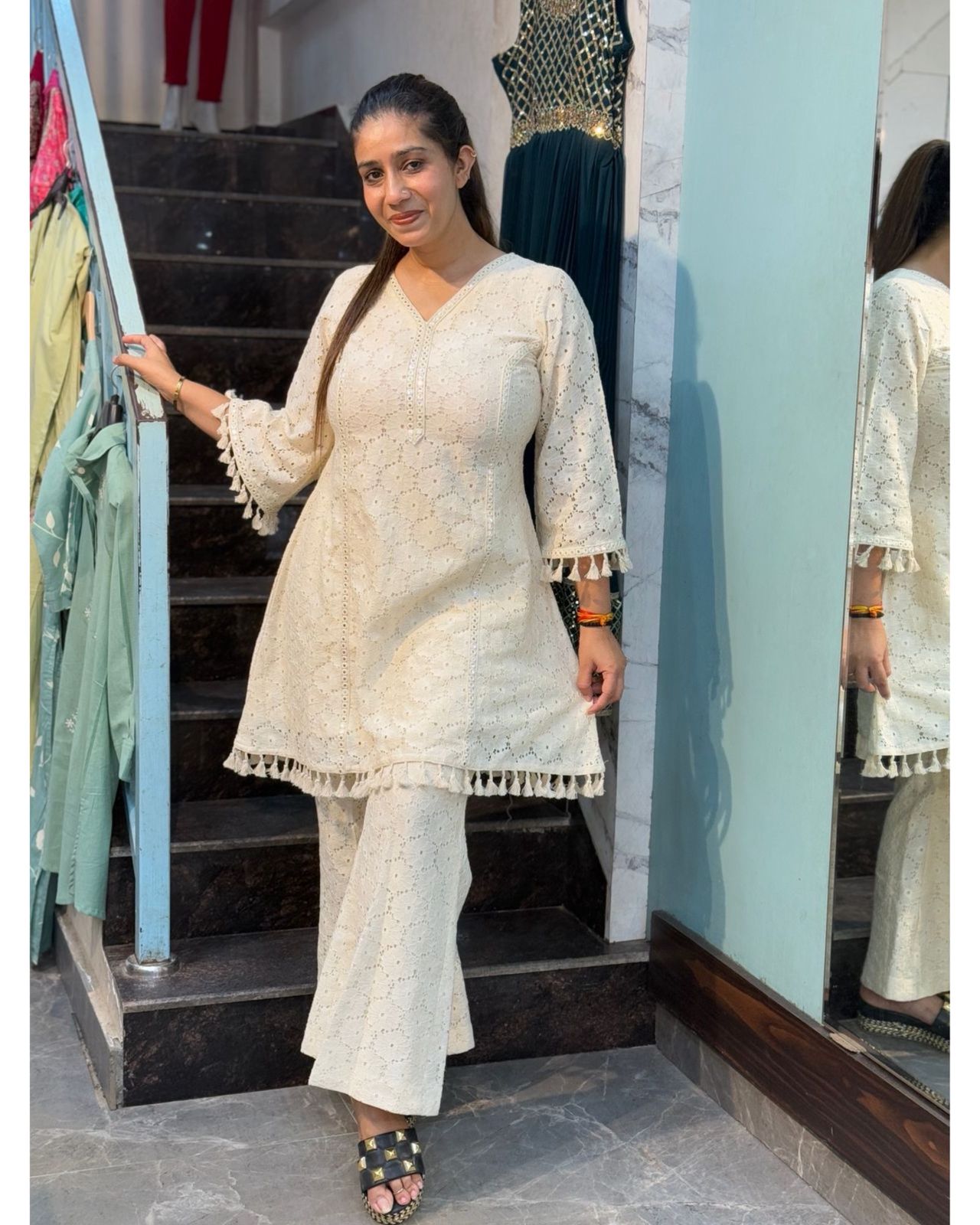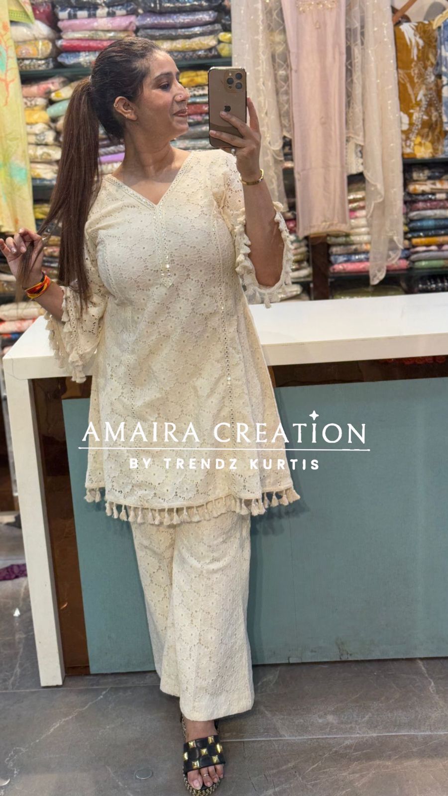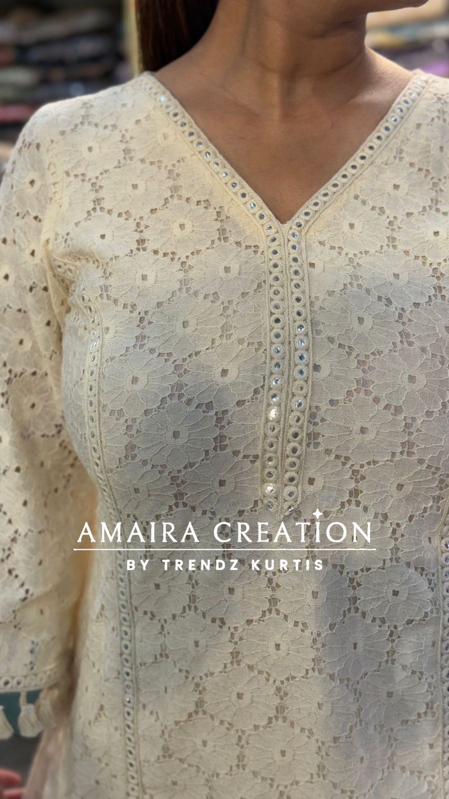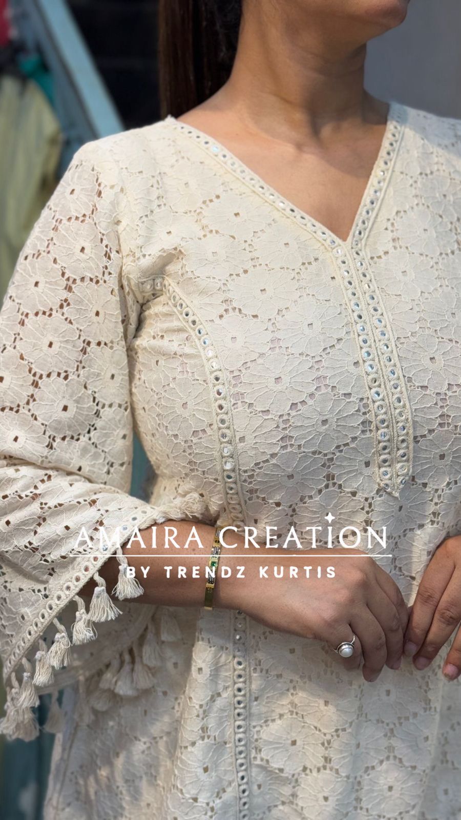 Kurti length 34 Inches (Approx) Bell Bottom length 37 Inches (Approx) Dry Clean Only *Disclaimer: Please note that minor color variations may arise due to varying screen resolutions.*