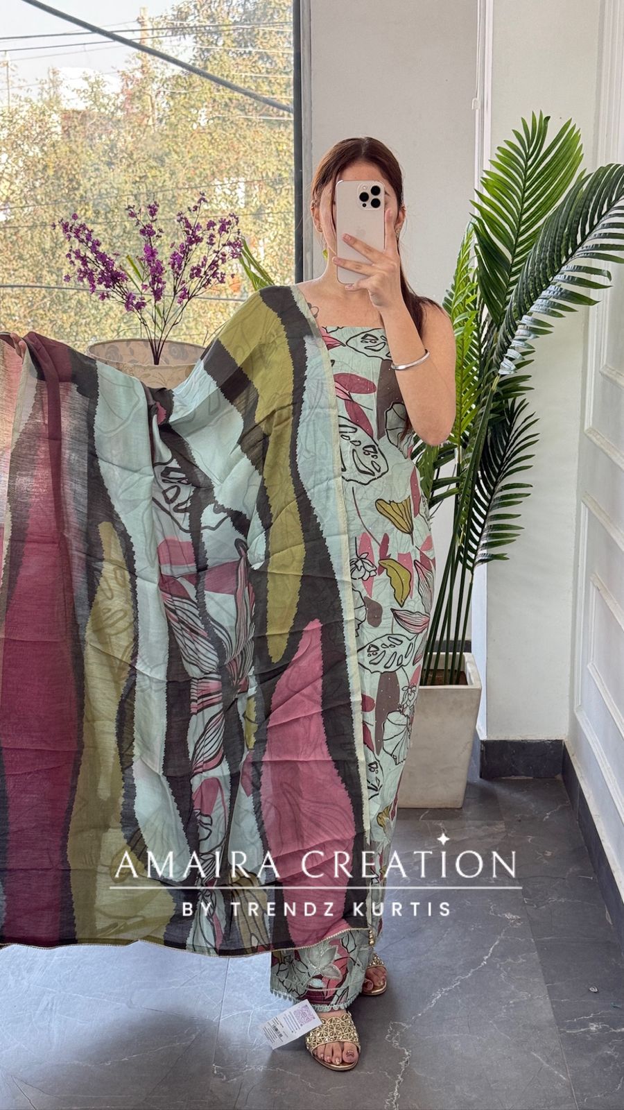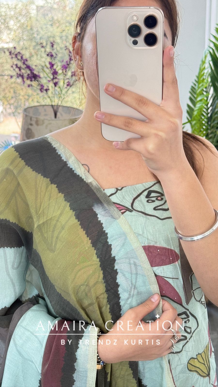 Premium Sea Green Muslin Fabric Unstitched Suit With CutWork Detailing