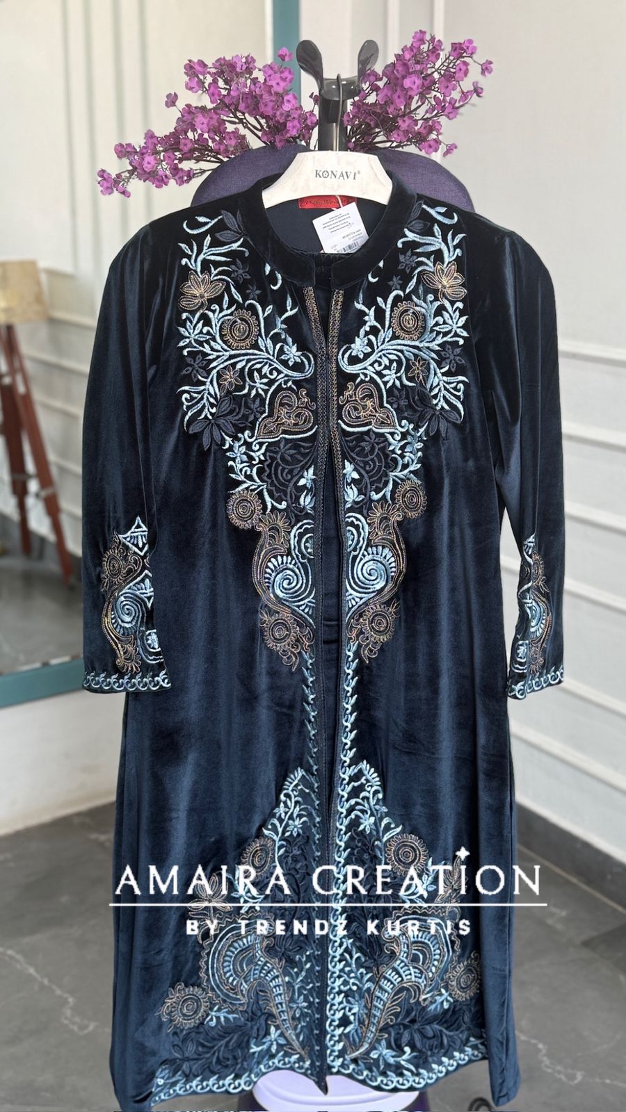 Shrug length 45 Inches (Approx) Pant length 38 Inches (Approx) A line Inner length 43 Inches (Approx) Pocket Available Dry Clean Only *Disclaimer: Please note that minor color variations may arise due to varying screen resolutions.*