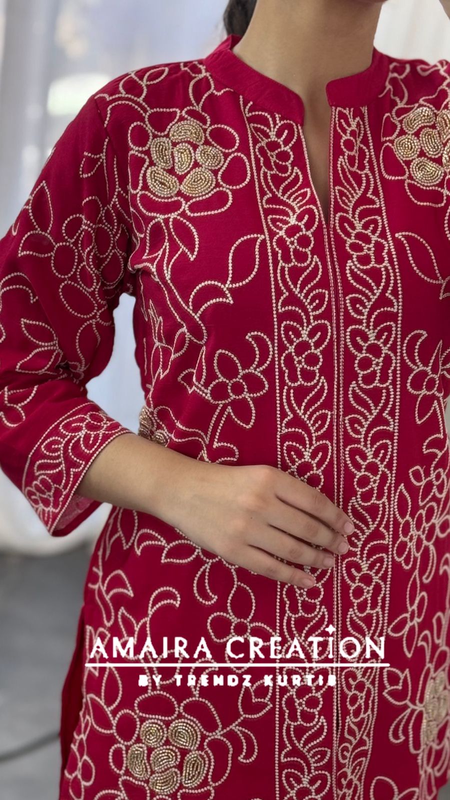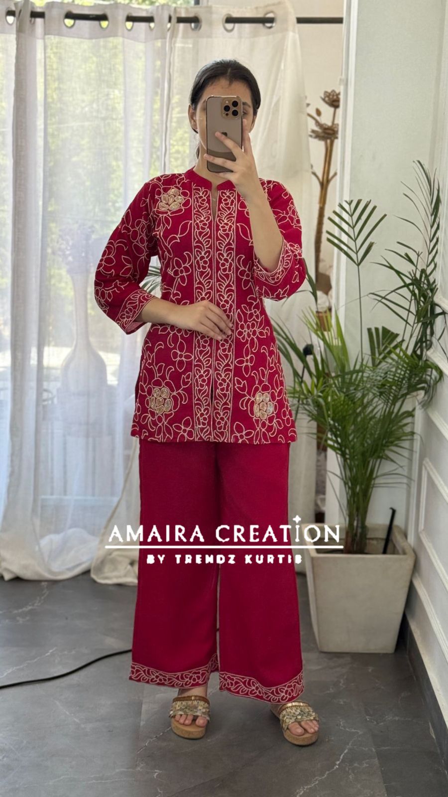 Premium Vichitra Silk Magenta Embroidered Cord Set