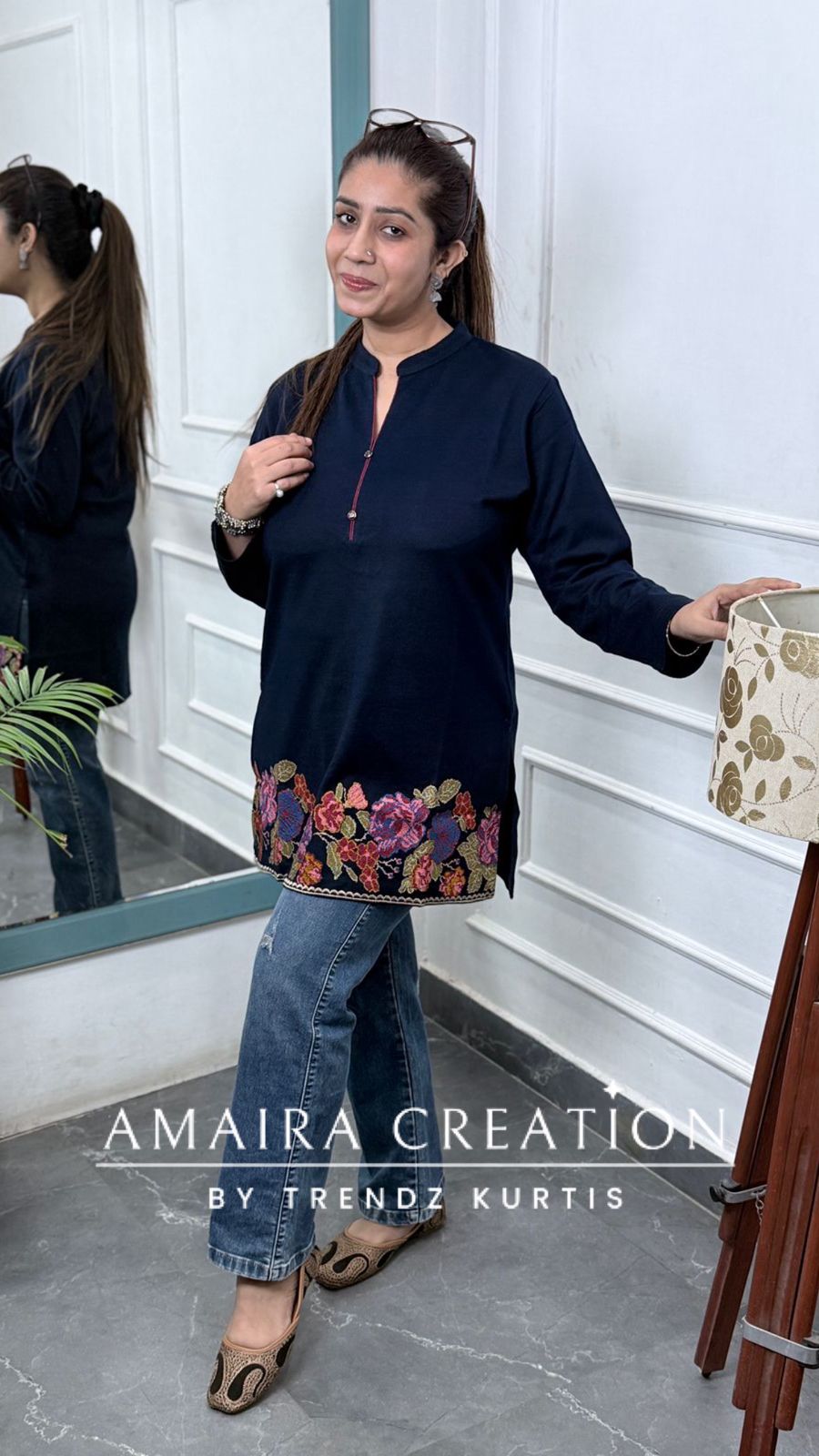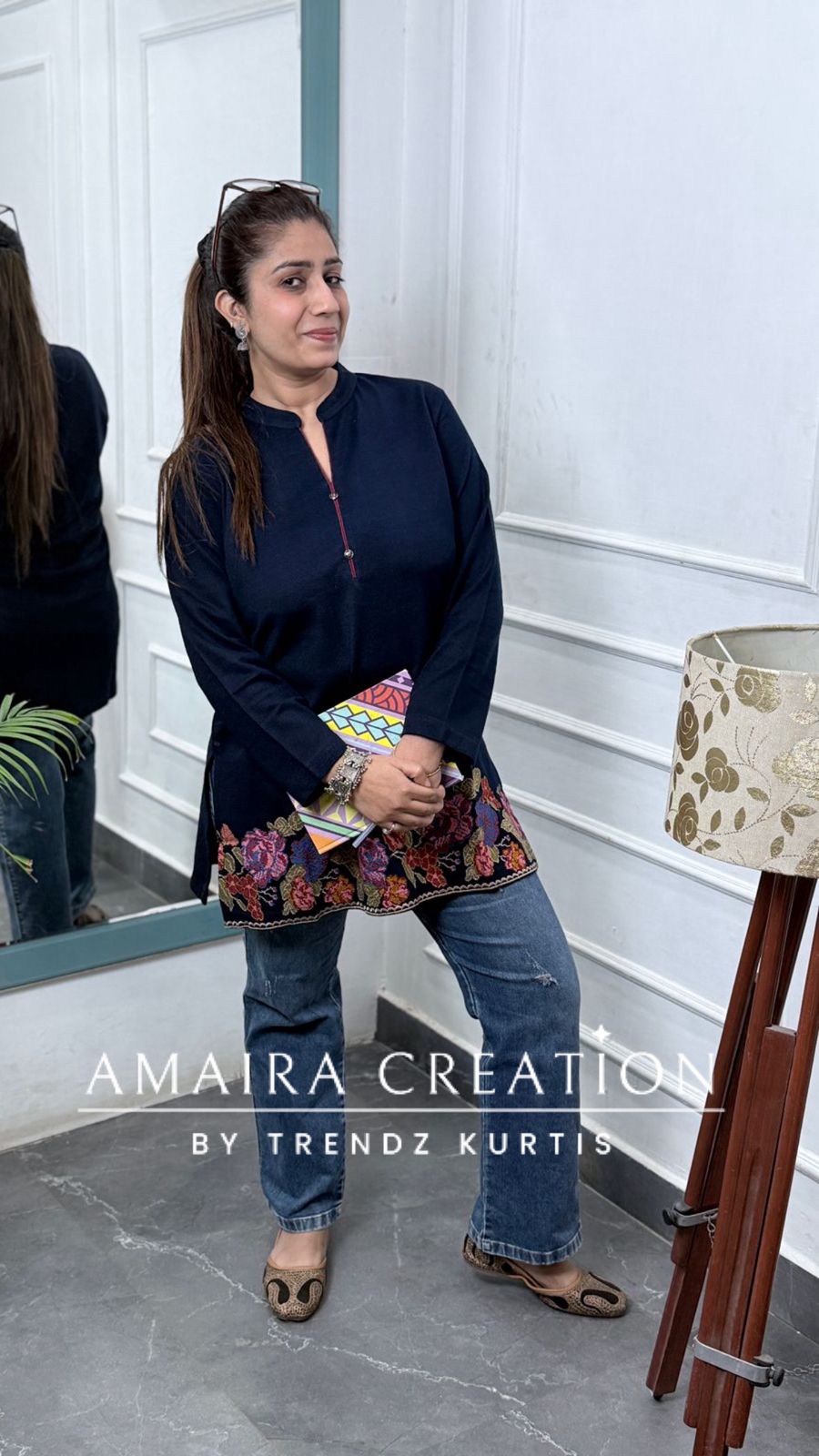 Premium Woolen Blue Colour Embroidered Short Kurti