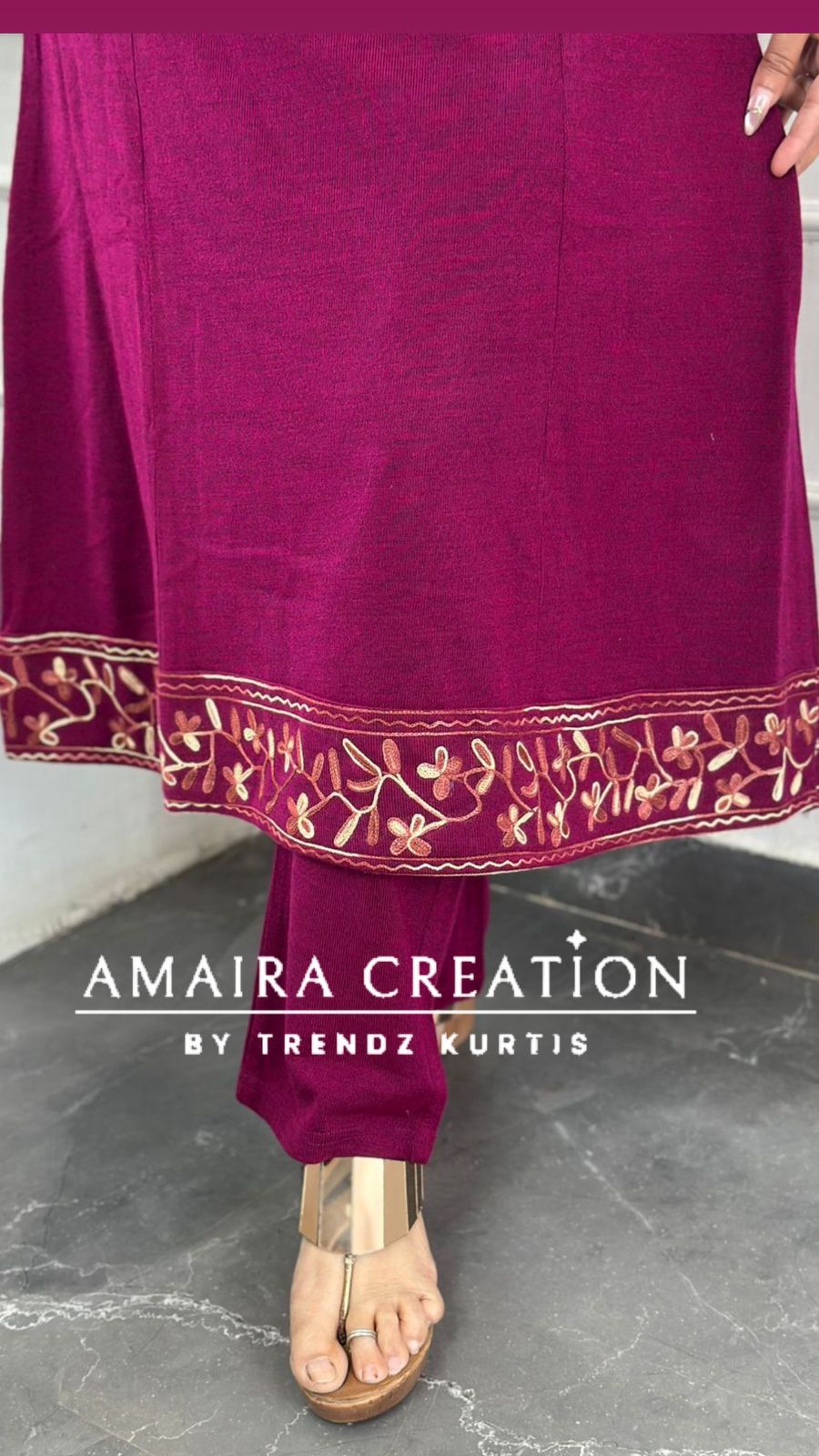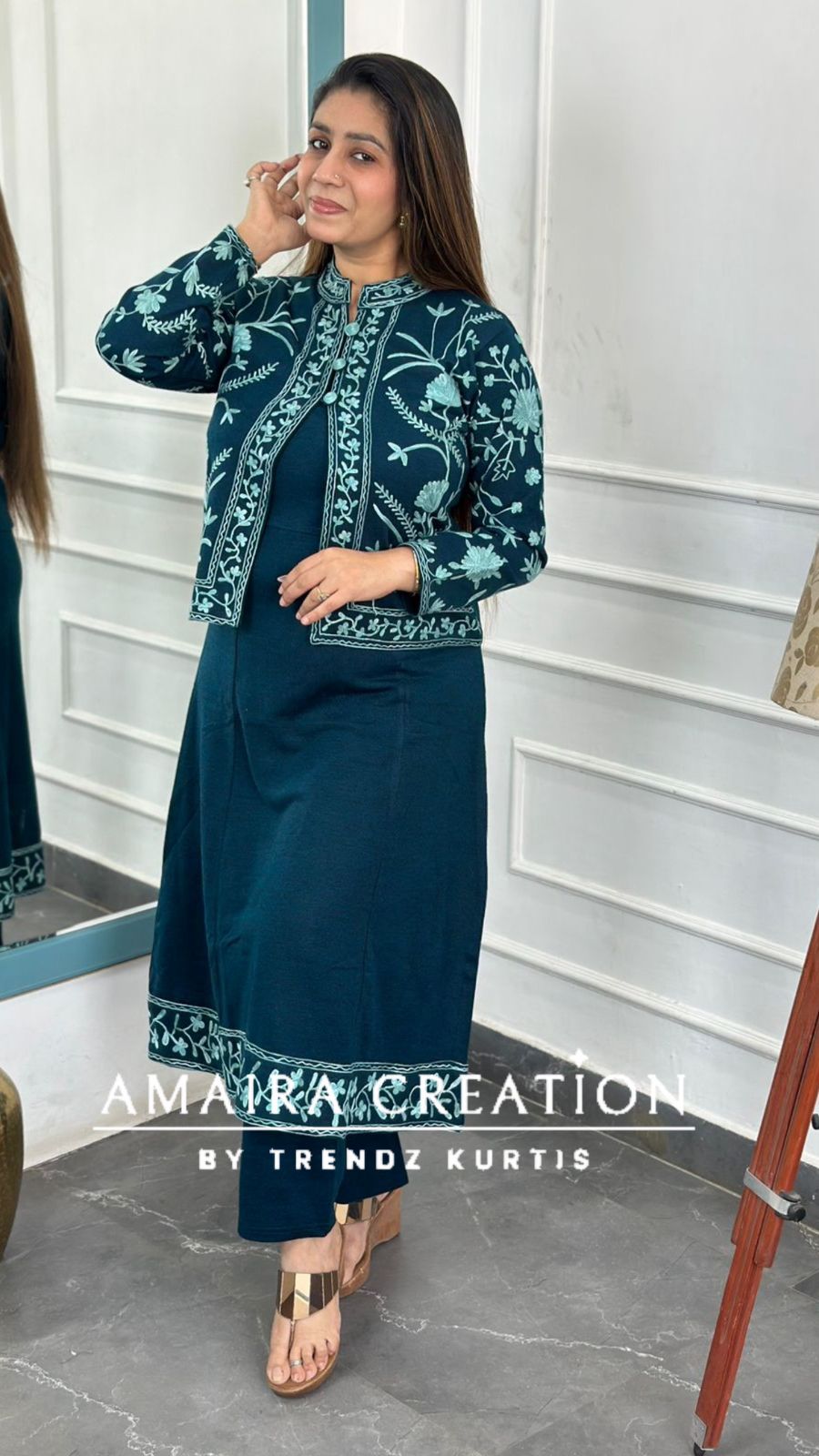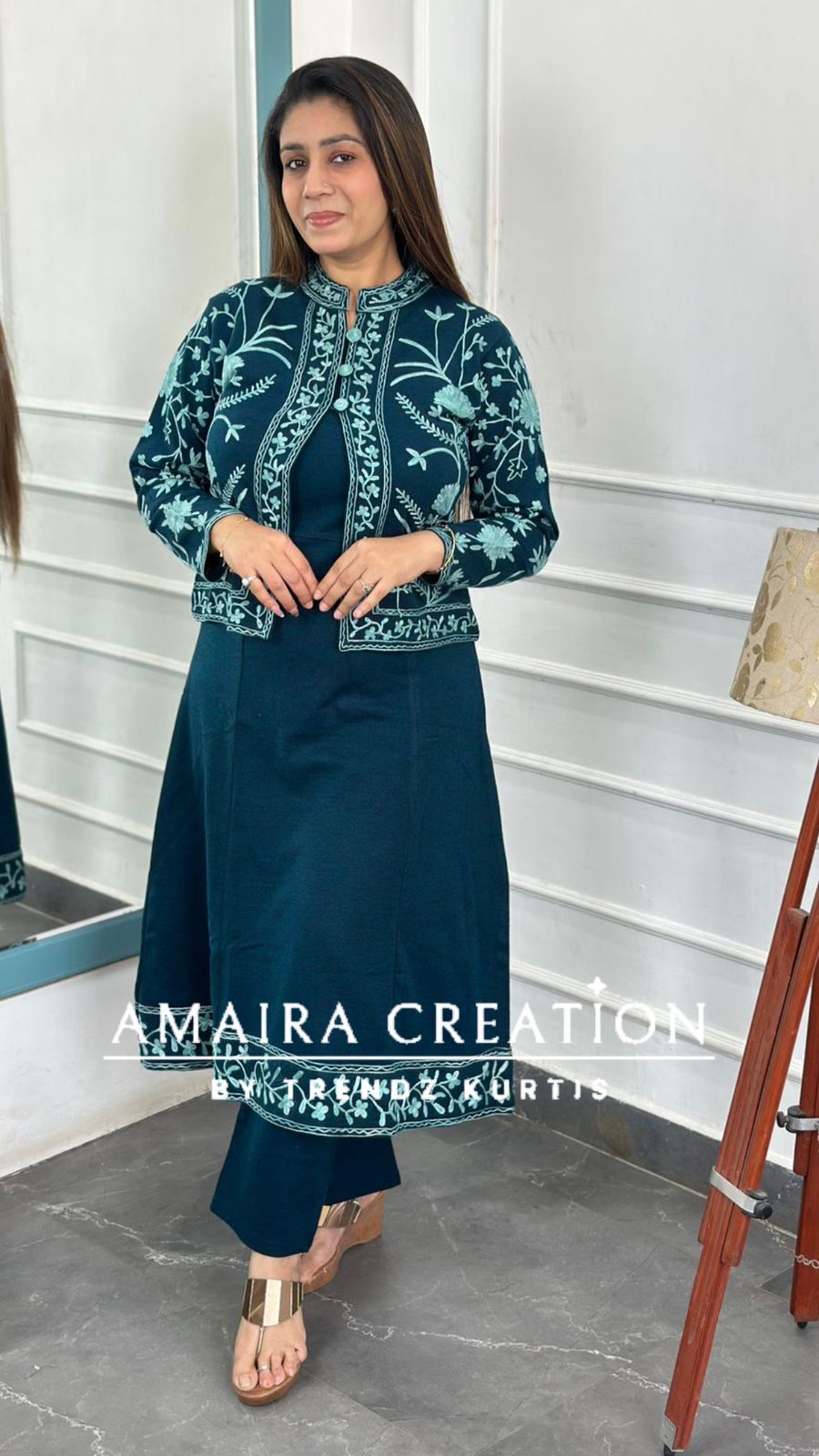 Premium Woolen Kashmiri Embroidered Three Pc Jacket Set