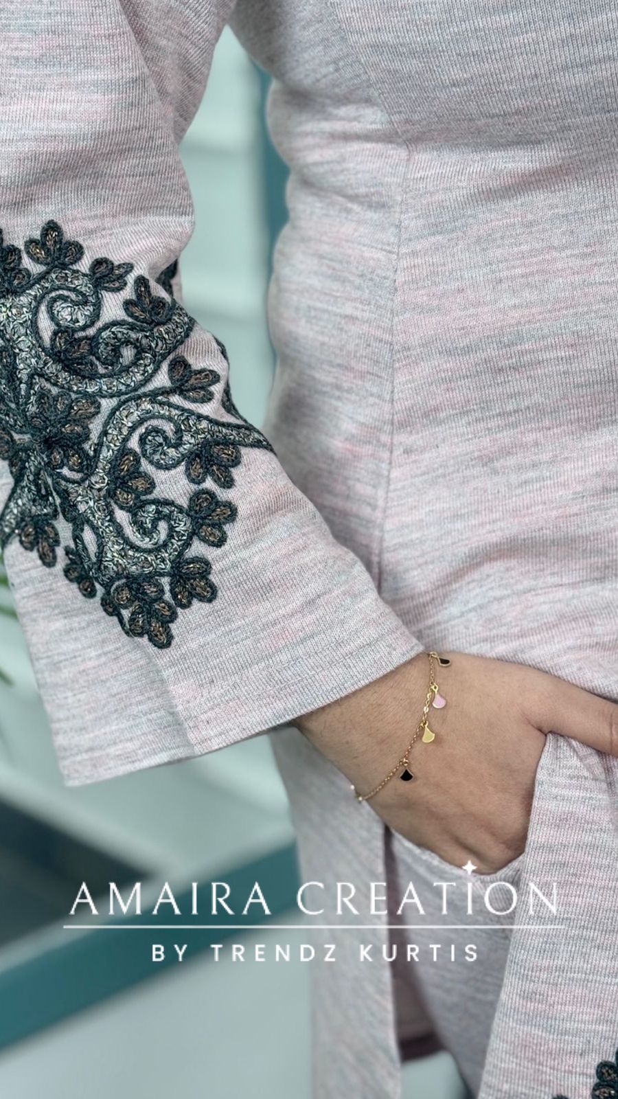 Premium Woolen Light Pink Embroidered Cord Set