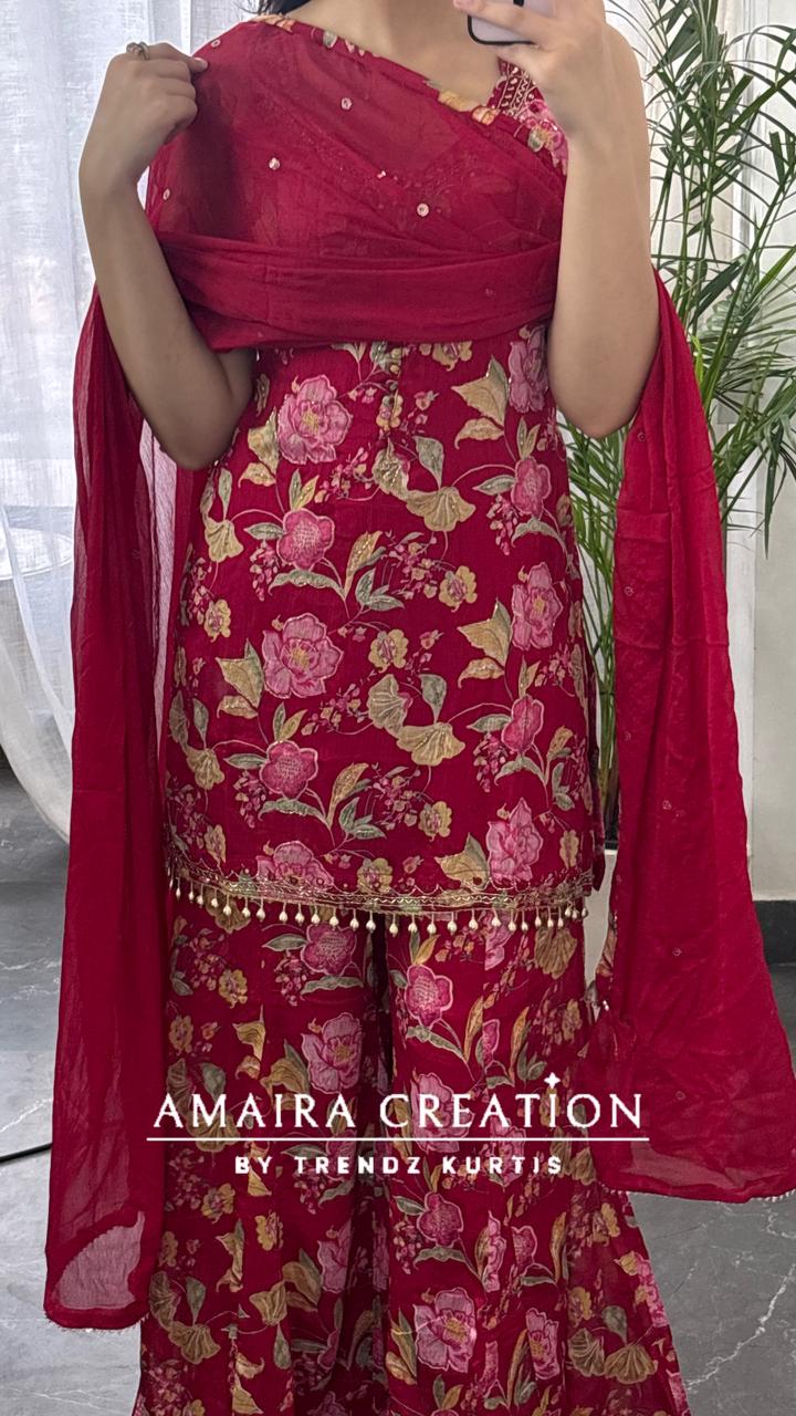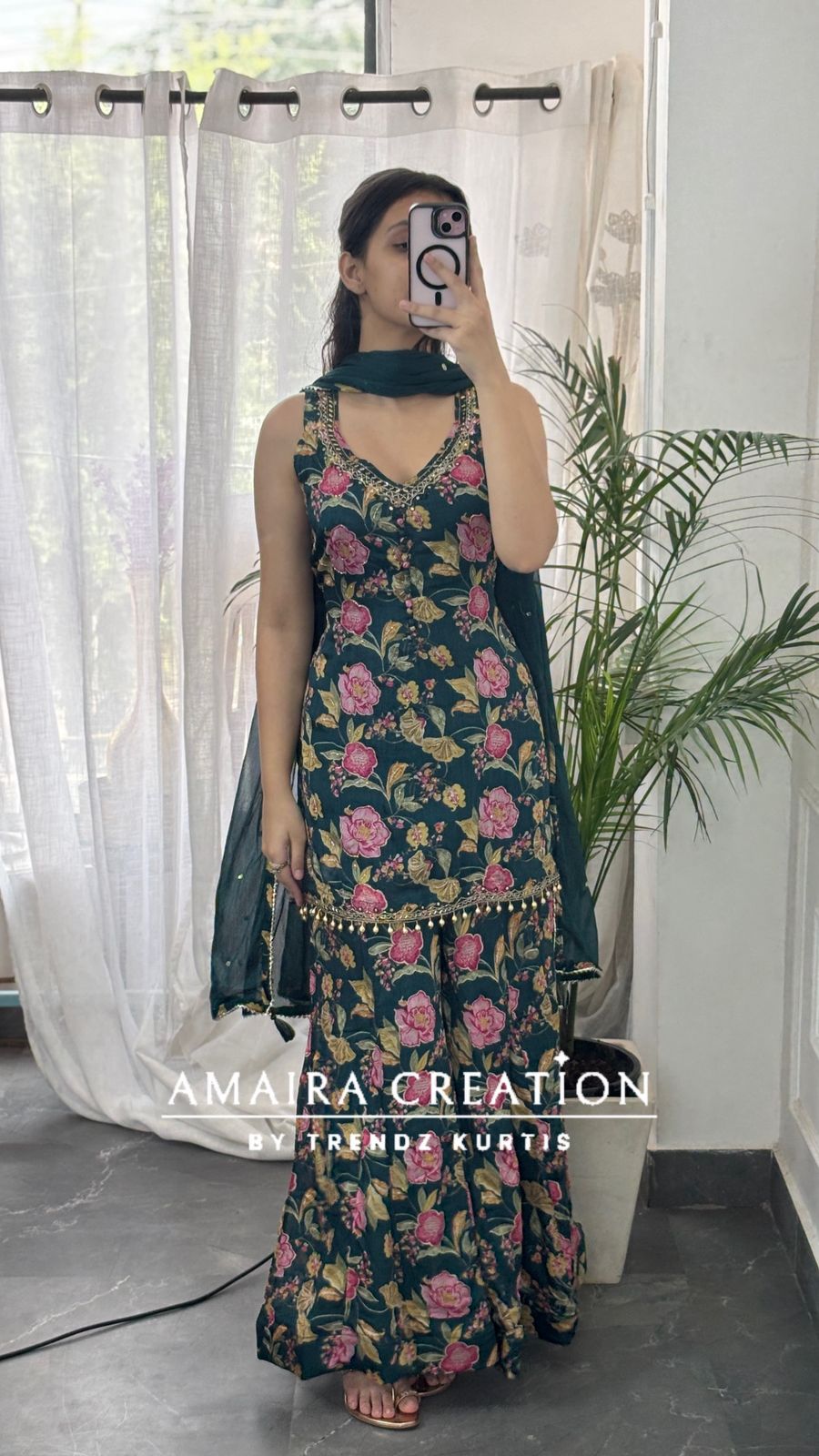 Strap Pattern Premium Chinnon Full Ghera Divider Set(17 inches sleeves available)