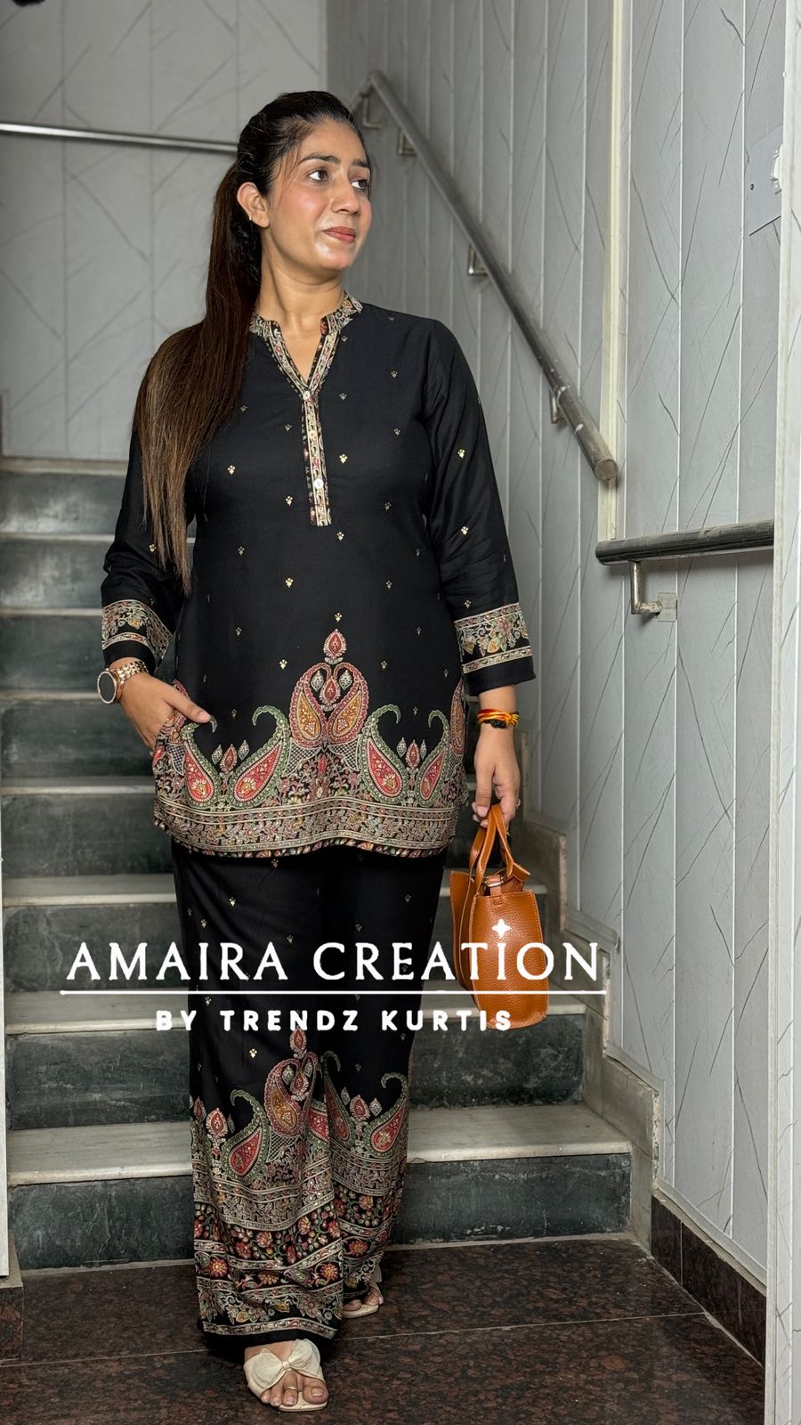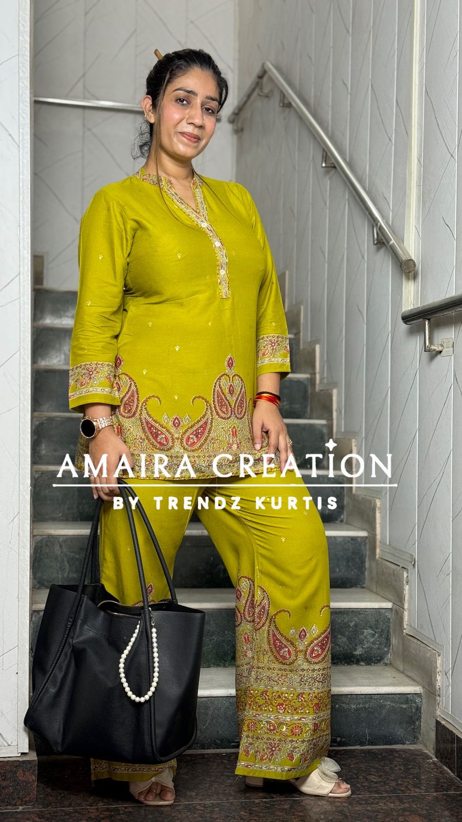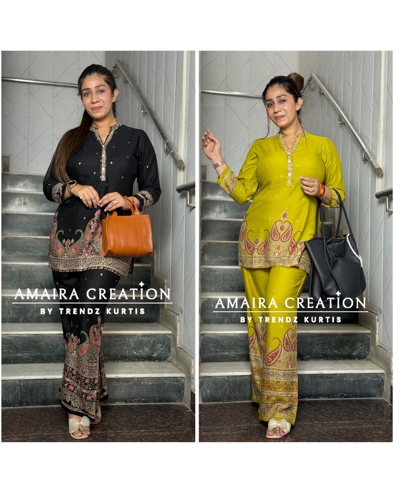 Black & Parrot Green Reyon Fabric Paisley Print Cord Set
