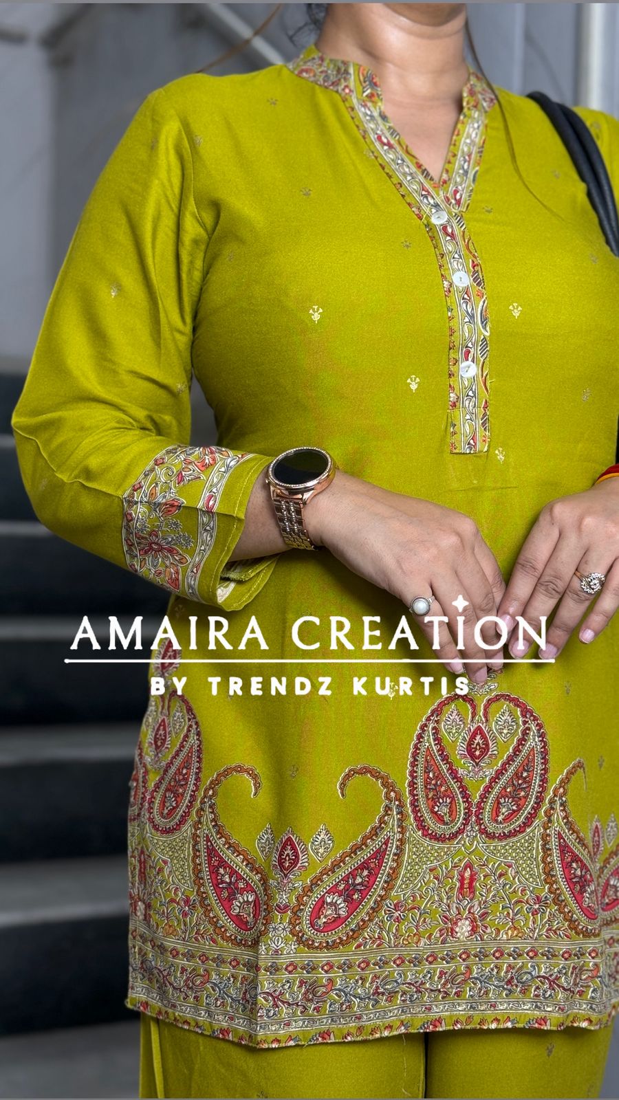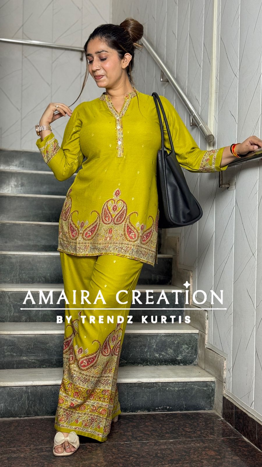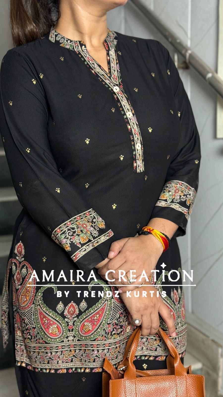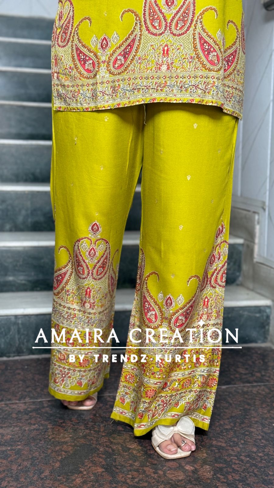 Black & Parrot Green Reyon Fabric Paisley Print Cord Set