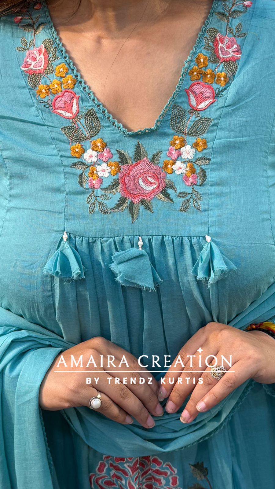Skyblue Thread Embroidery Beautiful Anarkali Set